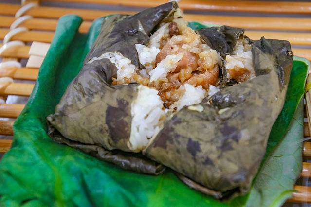 荷叶包饭给了我很大的惊喜。剥开第一层荷叶,再撕开第二层荷叶,就可以享用了。米粒软润而鲜香,荷叶的清香也很好地渗入到了每一粒米中。米中还包裹着香菇和肉肉呢。两个字,美味!