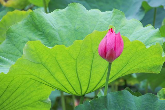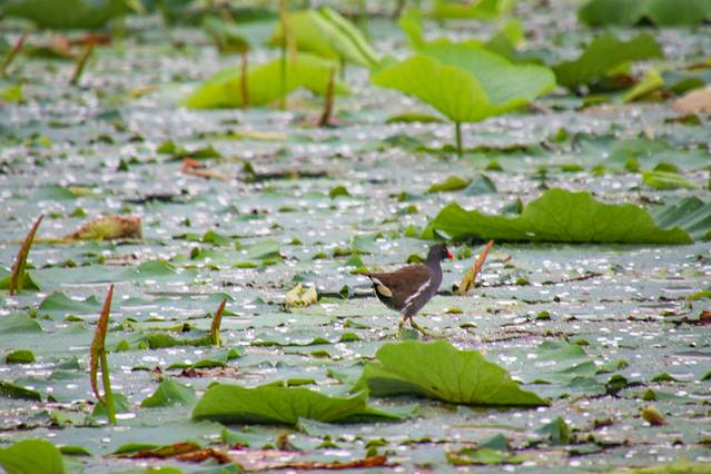 “你看!”我循着小伙伴的声音顺着她指的方向看去,哇,居然有一只水鸭在荷叶上疾走!它速度很快,上一秒还在荷叶上行走,下一秒就在荷塘里自在地游曳了。嗨,小水鸭,你是出来觅食?还是跟我们一样来赏荷的呢?想跟它打个招呼,又怕惊扰了它。不过我要感谢它,谢谢它出现在我们的视野,给我们的旅途增添了一份记忆。