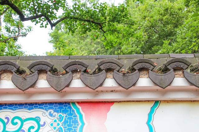穿过“太湖仙岛”牌坊,走过会仙桥,我们去参观月老祠。月老祠前面有一对大大的同心锁,旁边的铁链上挂满了小锁。有的锁已经生锈,与旁边的新锁形成了极鲜明的对比。我不禁好奇,他们是哪一年和谁一起来鼋头渚游玩的?当年许下的心愿如今实现了么?遥想间我走进了月老祠。月老祠并不大,一方小小的院落在这太湖边愈发显得幽静。游客来来往往,在月老祠里虔诚地许愿、系下祈福的红丝带,然后离去,只剩下随风飘扬的红丝带日复一日地诉说着人们对爱情的美好期许。