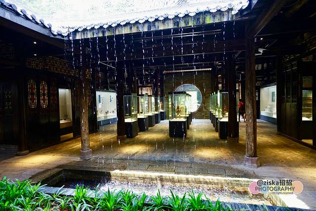 一路走进来的环境很清幽,甘坑客家小镇与知名收藏家黄志老师合作,将黄志老师收藏的6000件藏品进在此四栋徽派建筑进行定期轮展,通过将古建、历史藏品收藏展览、文化景区、文艺活动、商品运营进行融合,实现“文化—文物—文艺”一体化运营模式,将凤凰谷打造成内含博物馆元素的文化体验景区。
