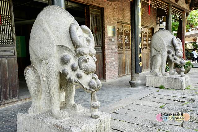 然后来到了甘坑博物馆,就在甘坑古炮楼院附近。门前的两座石兽称为“吸水兽/吸财兽”,广东人讲究风水,水象征着财富,吸水兽吸水代表聚财和风调雨顺的寓意。