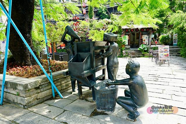 小镇内有许多客家人生活场景的雕塑,很有特色。