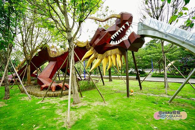 小凉帽农场有一只巨龙!!其实是滑梯啦,很好玩,哈哈哈