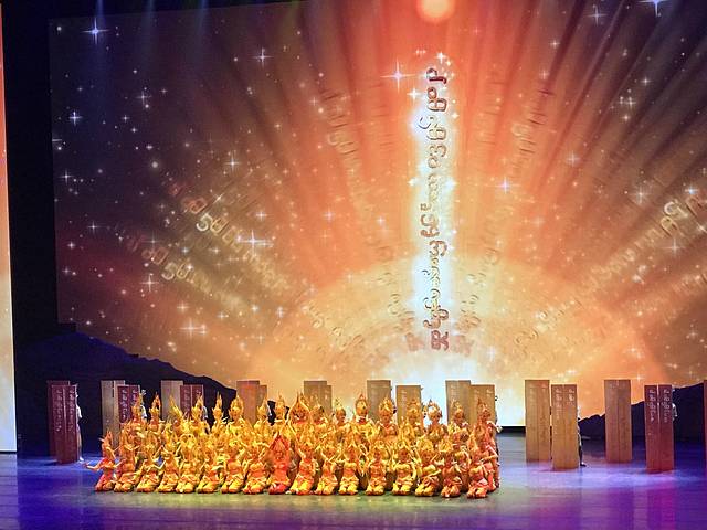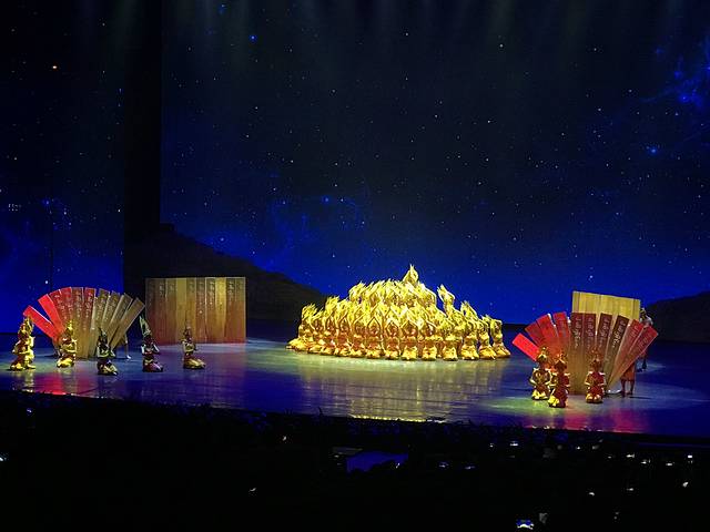 参加完泼水活动就可以移动至剧院看表演了,主要是表演傣族传统习俗的故事:纺纱、梳头、打猎、打渔等,喜不喜欢就看自己了,我妈觉得还可以。然后穿插了卖字画环节(现在好多活动都这样--请个大家送三幅子,剩下的卖几幅)
