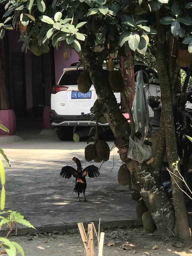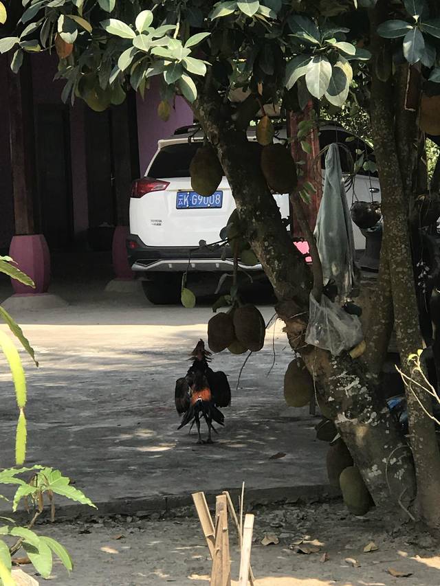 在院子里待了两天多,看了看园子里种的菜、香蕉、橡胶,养的鸡,很快就没的看了,躺在客栈里晃吊床,听着啊啊啊的孔雀叫,也是很享受放松的时间。