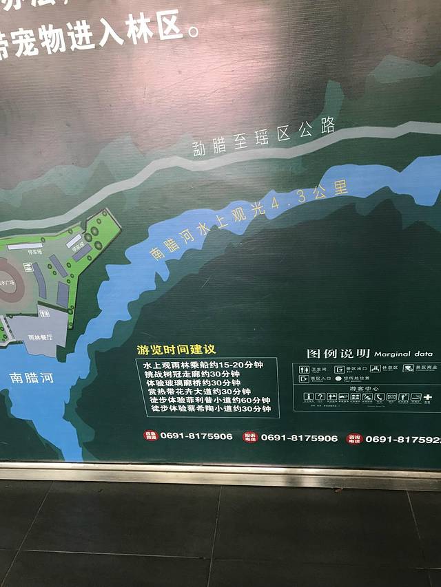 大门票+游船+树冠走廊/玻璃廊桥二选一共170元。景区门口,要在南腊河上乘船漂流(可以步行进入景区大门,但是时间较长),进入景区大门步道再行驶,具体时间见下图。