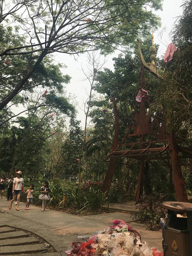 看完了,继续溜达,版纳环保意识很差,很多地方都是垃圾,昨晚上的孔明灯到处都是。总的来说,西双版纳整体环保意识不好,砍伐树林、破坏植被随处可见,河流挖沙、山腰建房,到处烧烤、乱扔垃圾,虽然版纳整体绿化面积很好,但是也要结合气候地理问题综合考量。前段时间看象群回家的新闻,如果说是因为生态环境破坏,我不怀疑,希望坚持绿色发展、可持续发展吧