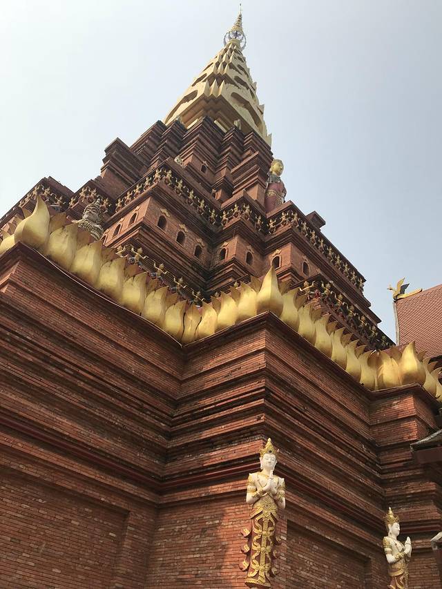 大金塔,红砖金顶,镶嵌琉璃玻璃制品,还是挺好看的。大金塔里面喇叭会播放音乐,听不懂,但是听完之后感觉心真的能够平静,推荐聆听佛音