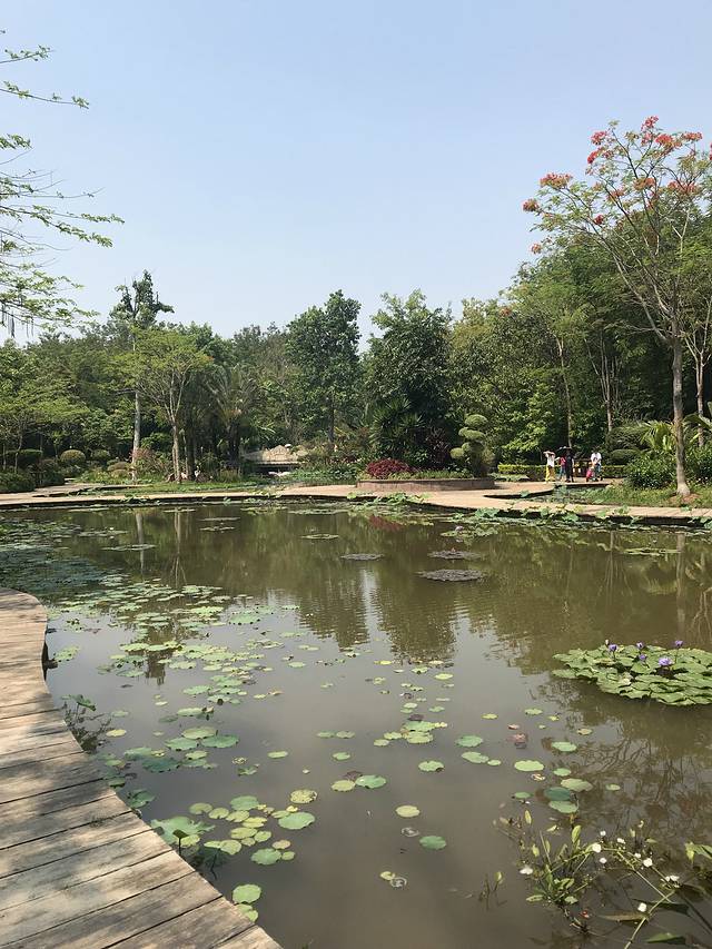 中科院位于西双版纳傣族自治州勐腊县勐仑镇葫芦岛,由水域将整个园林围绕,出入有吊桥。预定一晚中科院植物园王莲酒店,房费包含两张门票,可以多次进出植物园,有摆渡车在各门口接送有课。将车牌号报给酒店后从西门直接开车进入,到达王连酒店时还未到达入住时间,变先去园子里逛了。可以利用百度地区导游地图,逛。