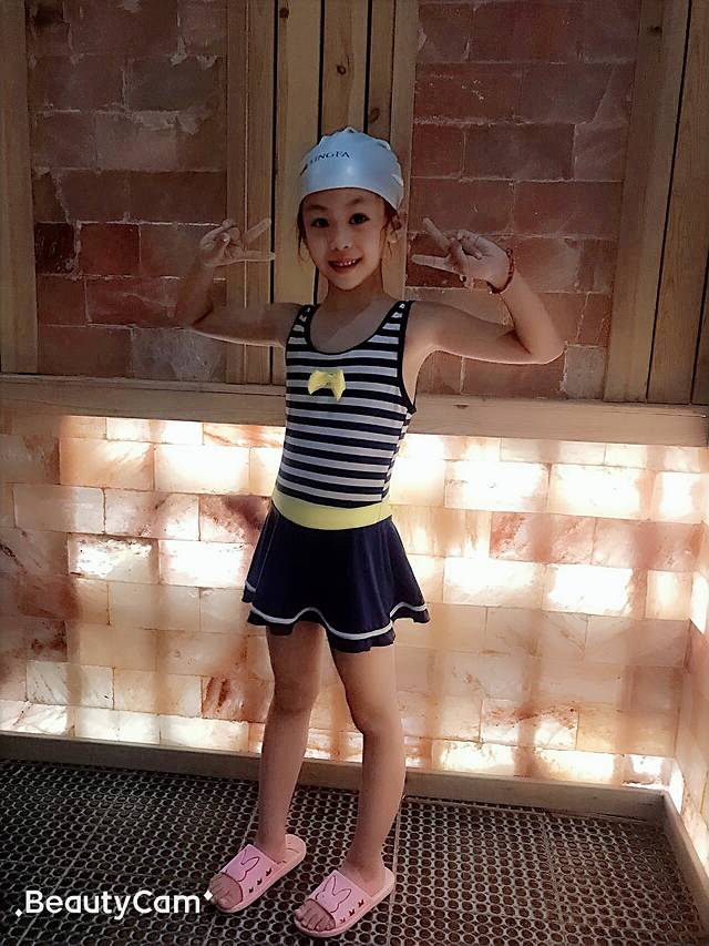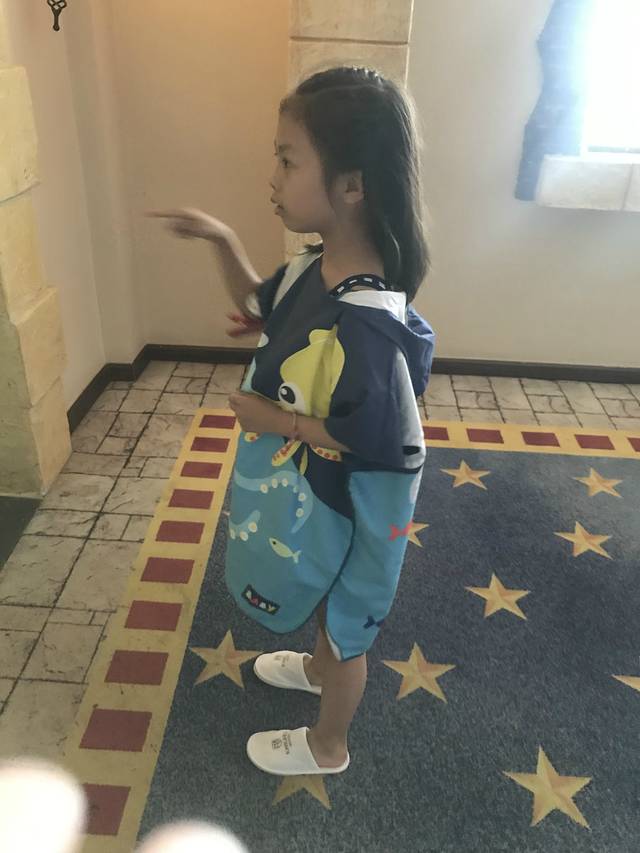 泳衣帽、泳圈眼镜一系列建议带全,都有卖的,但是很贵!给孩子带大浴巾,出水还是冷的!