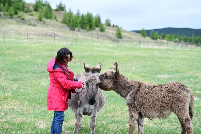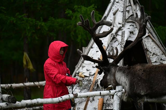 带上一些小零食,远远的,驯鹿就会跟着你走了。让小鹿张开嘴巴,递上你给他的小点心,它就会听话得像刚得到零食的小孩子,你可以靠近它,可以伸手抚摸它的鹿角。