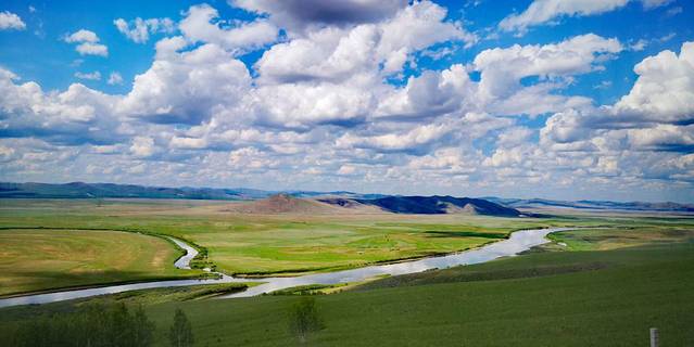 在额尔古纳市区往南,S201省道附近,有一片迷人的草原景色,这里就是莫日格勒河,穿越草原夏营地,成了这里最棒的旅游事,也是整个行程中红阳最喜欢的一个项目体验。