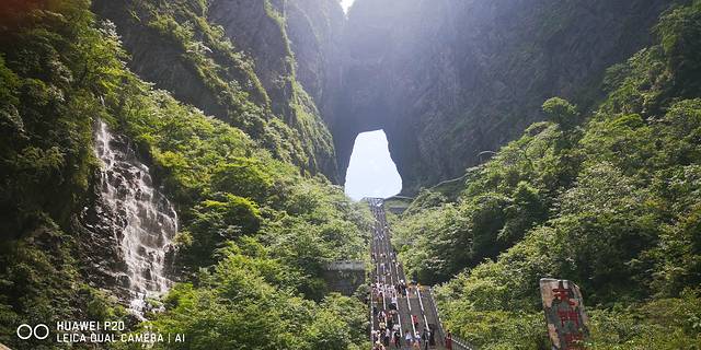 由于第二天武陵我的实力得到保存,今天的天门山这行仍然精力充沛。由于景点人较多需要早起去景点排队。到达山门后导游买完票就安排我们乘缆车上山,乘车过程中可远观天门洞,下山乘坐很长时间的室内电梯后,乘巴士过九九通天大道下来。由于体力尚可,这次我们选择的是步行999台阶。导游告诉我们天门山由于海拔原因山上多雾多雨,一年有200多天云雾缭绕,可看到云梦山顶的概率25%,我们是很幸运的。