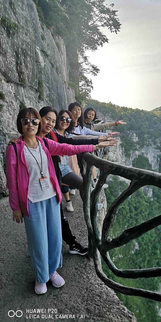 乘百龙天梯上行至峰顶,先后游览玻璃栈道、鬼谷栈道、御笔峰、仙女献花,为保存体力我选择乘缆车下山,步行十里画廊。同行的其它三个朋友选择徙步下山,如果体力允许的可以试,我们同行中的最大一位53岁大姐就是徙步下来的,约二个半小时。不知道是我们天生胆大还是网络炒作,反正我们一行5个妇女,除一人第一天行走玻璃桥时有些害怕,其余四人均无任何反映。风景如画,值得一去,但十里画廊比较普通,时间短的可不去。可能是这里的山色绝美,有些审美疲劳了。