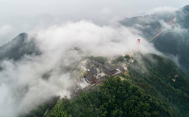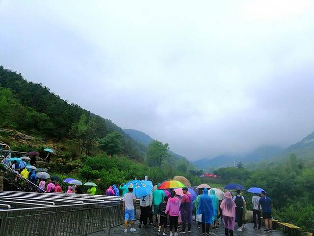 一眼望去烟雨蒙蒙、云雾缭绕、犹如仙境,观天蒙山上云雾围绕如同一幅变换的山水墨画,我想今天我来对了,和我一样雨中登山的游客络绎不绝。
