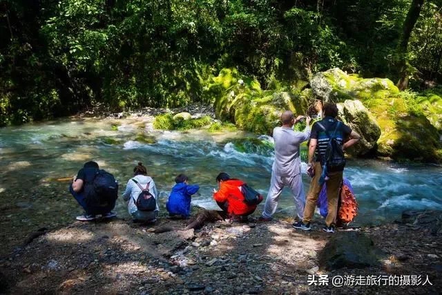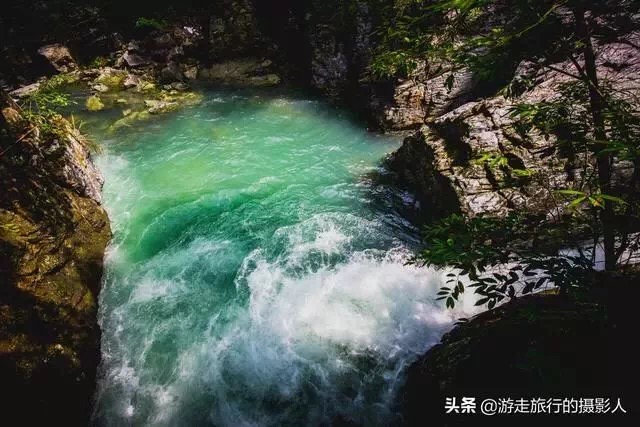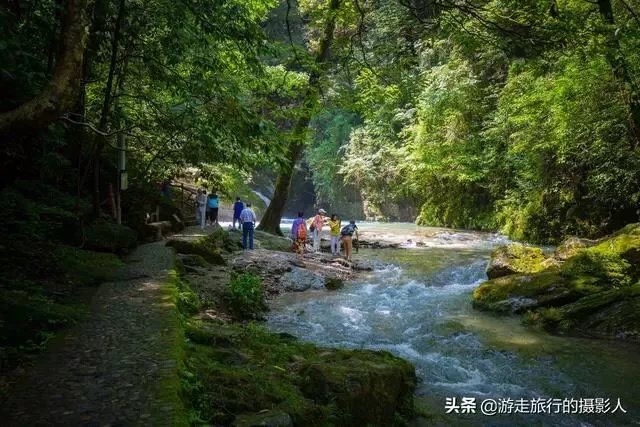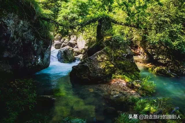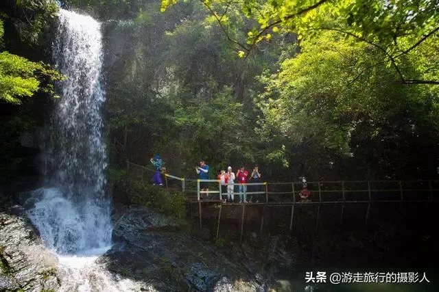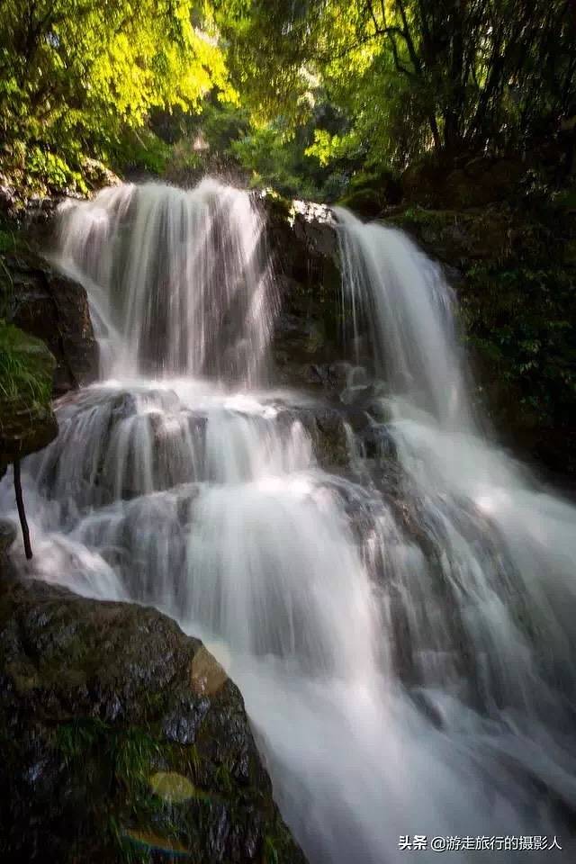 静谧随脚步的移动会被一阵水声打破,原来是天然的“水帘洞”,山水从岩石飞流而下,形成近两米高的水柱,人要从水里面穿过来,甚是壮观!