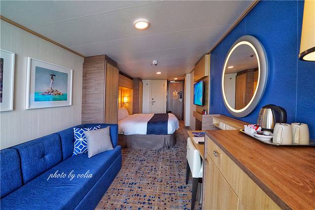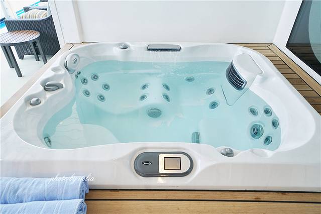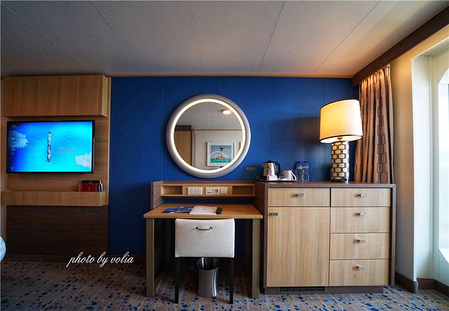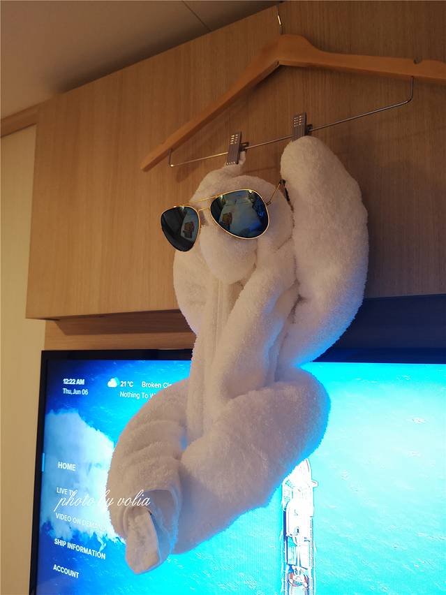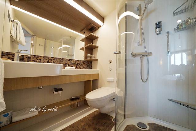 这次我们住的是双人阳台房——简约风格的客房,色调淡雅温馨,阳台视野开阔。光谱号现在的航线都有折扣优惠,对比之下,我们还是喜欢阳台房,性价比不错的。