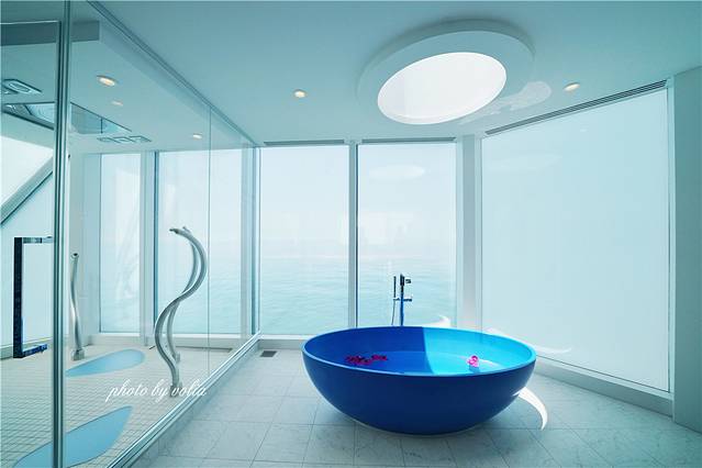 主卧室更有一间伸出海平面的无敌海景浴室。
