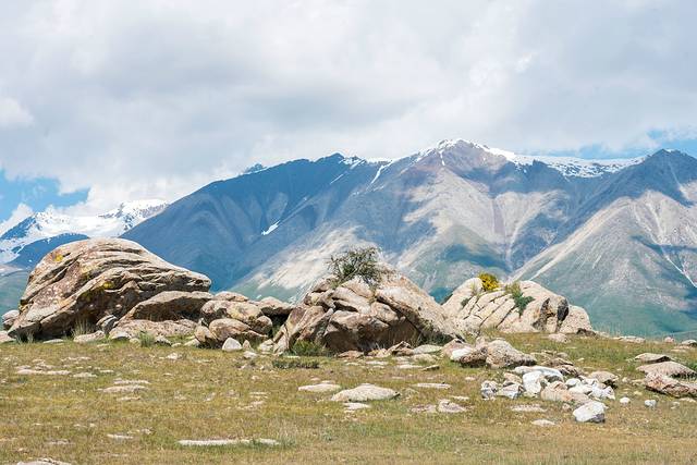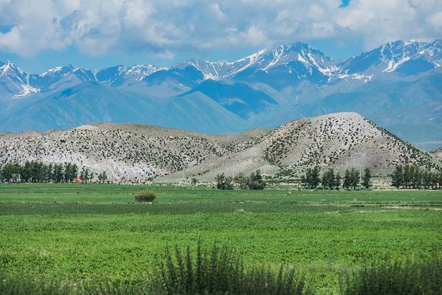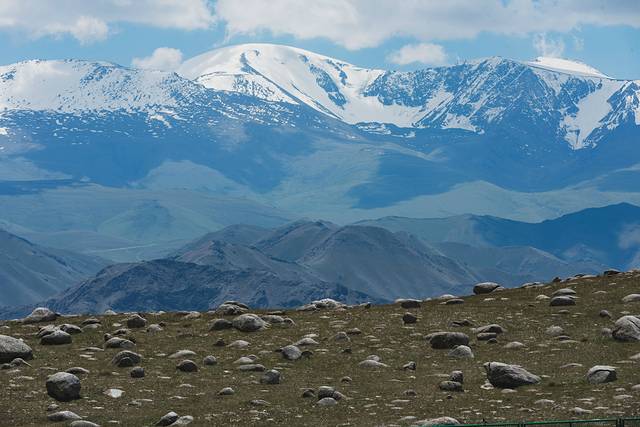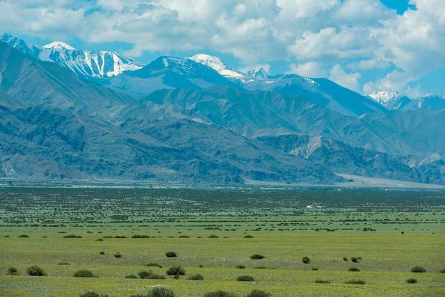 进入阿敦乔鲁,有种到了青藏高原的错觉,仿佛离天很近很近,通透的蓝天,天上高速流动的白云,白云下是洁白的雪山,雪山之下是开阔的草原。