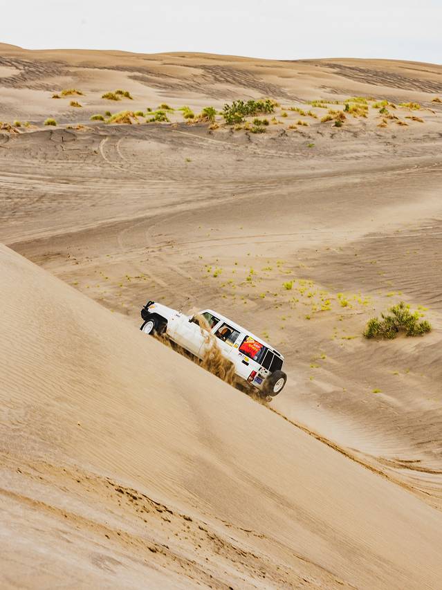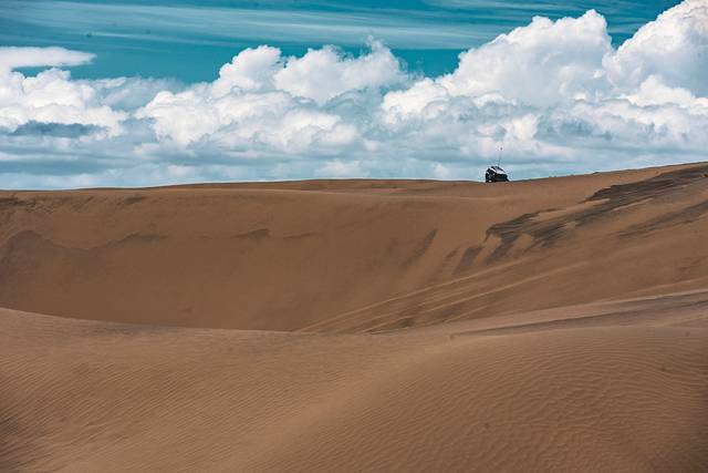 坐上越野车,从六七十度陡坡上直冲而下,还没回过神来,车子又冲上第二座沙丘,车上的人不是一路尖叫的就一定是心脏全都跳到嗓子眼上来,吓得说不出话来了,实在是太刺激了。