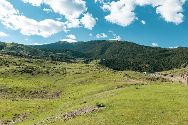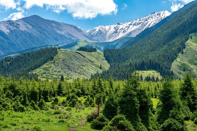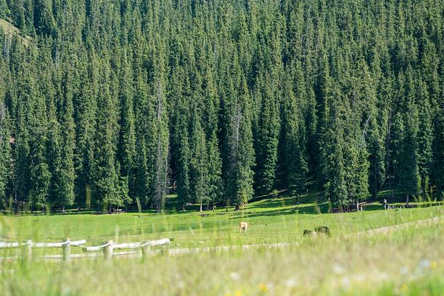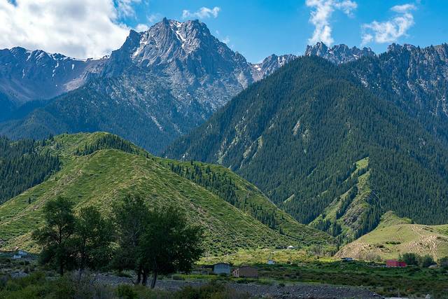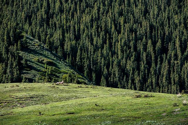从这张照片中,你可以清晰的看到天山山系中立体的地貌,雪山、苔原、草原、林带同在一个画框内。