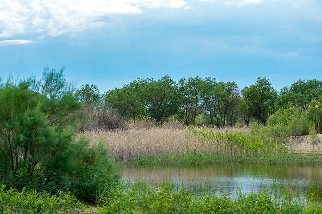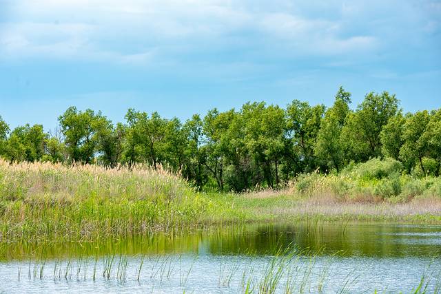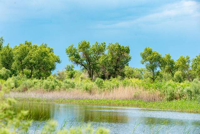 一汪蓝色的水域出现在我们右前方,据说,由于这片湿地保护较好,各种野生动物、水鸟已经视这里为它们的天堂。正是因为有了这一汪碧水,生命便充满着诗意,天空变得更蓝,世间才显现出迷人的多彩。
