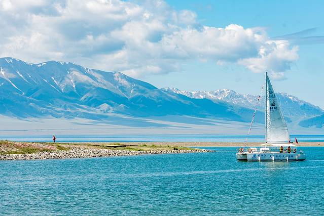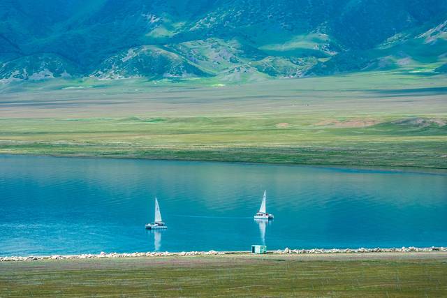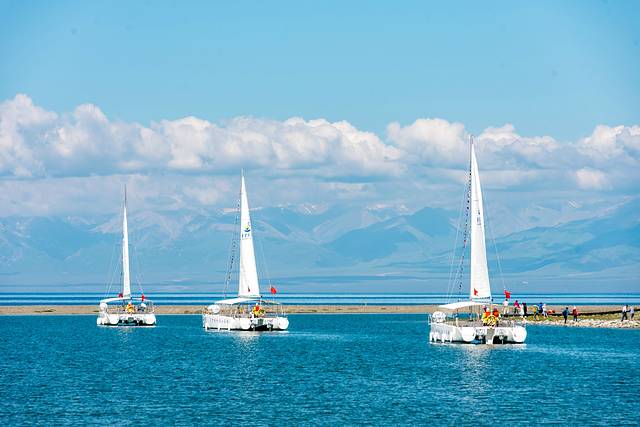 这么美丽的湖泊,仅仅远观是不够的,在赛里木湖乘坐帆船遨游,一片蔚蓝尽收眼底,则是体验“赛湖蓝”的最佳方式。