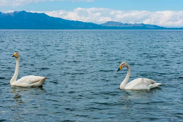 看着湖里游来游去的天鹅,听着远处传来的哈萨克族的音乐,我终于领悟到,人与自然的含义,人是自然的孩子,人属于自然。