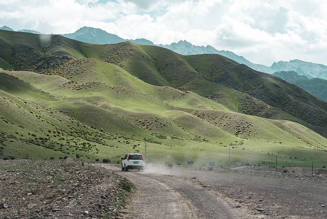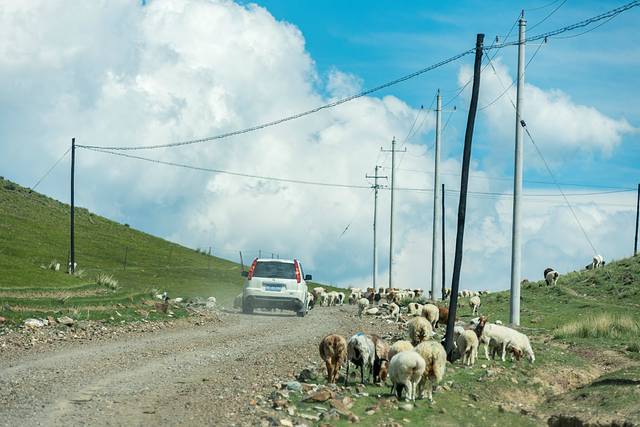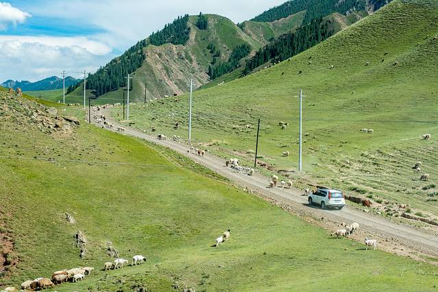 羊群挤满了路,我们也只能缓慢地通过,这里水草丰美,想必这就是牧民的夏牧场了,刚刚从冬牧场迁徙而来的羊群,正享受着一年中最适合的季节。