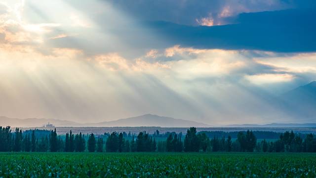 当越来越多的光束透过厚厚的云层像一把利剑刺向地面的时候,我感觉,那是上天给我眼睛的礼物。我甚至感觉,顺着这一束束阳光,我就能爬上天空,俯瞰这片美丽的土地。