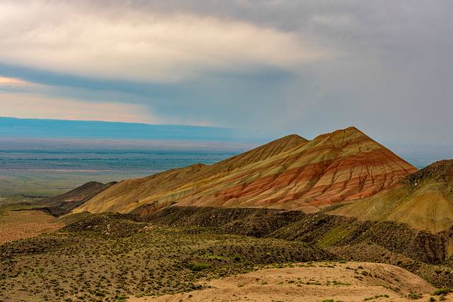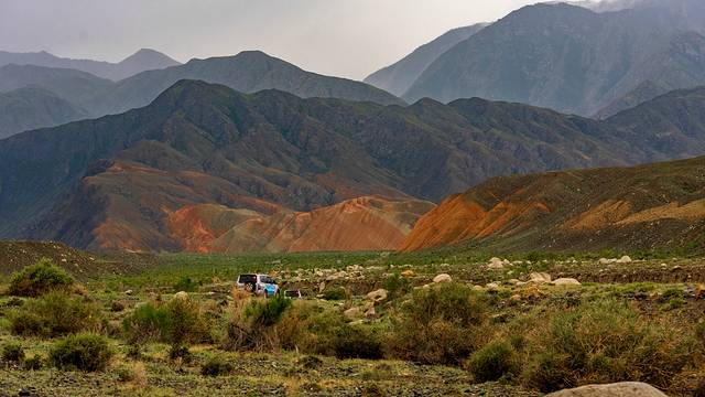 有些美景值得我们一路颠簸,精河县的七彩红山嘴就是这样的一个地方。虽然天色有点阴沉,路上还下着小雨,却没有浇灭我们的热情。