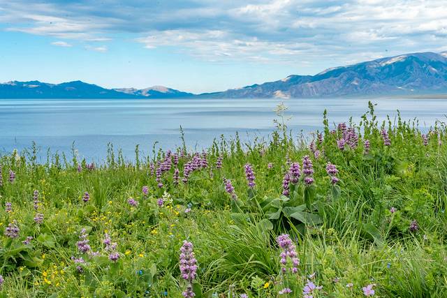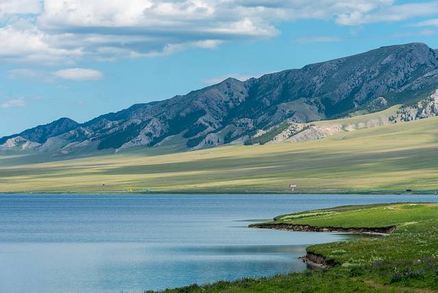 微风拂过,面前的野花和青草随风摆动,飘来草原特有的夏日清新,湖面的随风而起的涟漪和天上缓慢移动的白云提醒我,这真不是一幅水彩画。