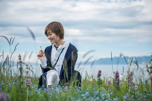 随意走入野花丛中,心情犹如眼前的山花般烂漫,笑容如鲜花般绽放。