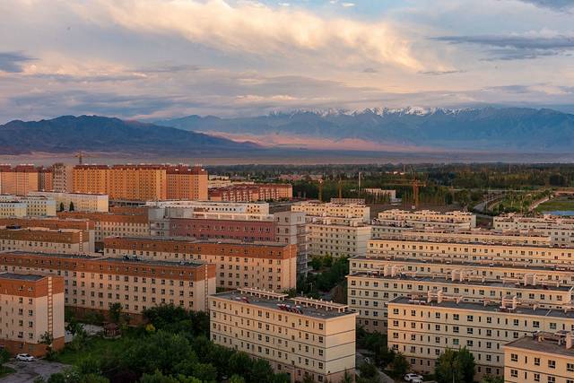 精河县的科技文化中心被当地群众称之为八角楼,楼顶是从高处鸟瞰精河县城的好地方。想不到在这个小县城,还有让我做一回爬楼党的机会。