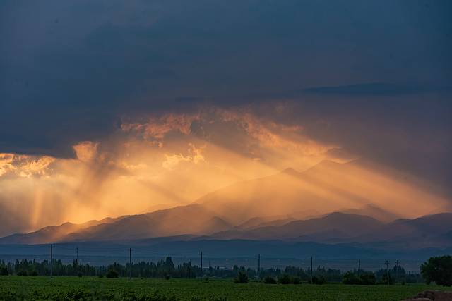 也许我当时望着布满天空的道道金光,实在是激动得有点语无伦次,以致于后来同车的小伙伴好奇地问我,你平时没见过这种阳光吗?这在新疆很常见啊。