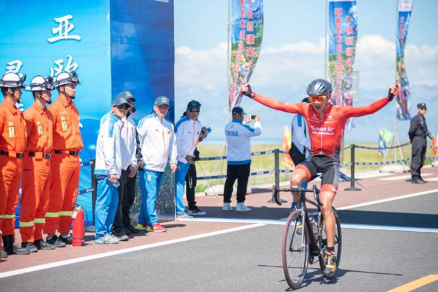 这便是环赛里木湖公路自行车赛,在这风景如画的地方比赛,对于选手来说也是一种享受吧?