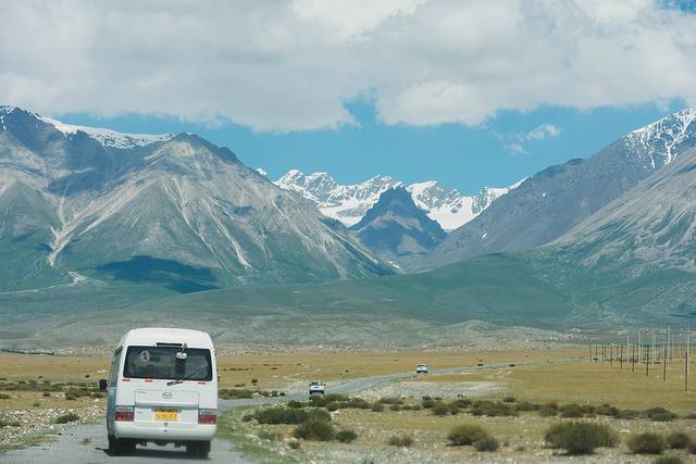 到了后面,雪山出现在我的车窗外,路也成了土路。