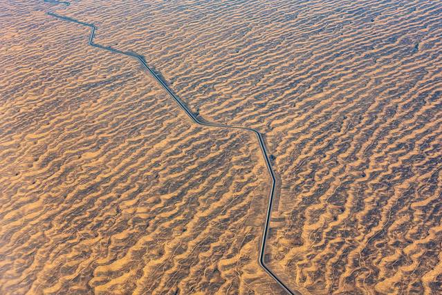 木特塔尔沙漠,当地人又叫它黑沙漠,它的颜色看起来要更深色一点。这个流动性沙漠,如今已经被甘家湖保护区和艾尔湖湿地的森林牢牢地控制了。