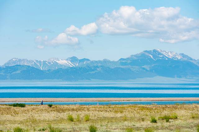 微风把平静的水面吹起涟漪,望不到边的湖、远处的草原、更远处的雪山,还有雪山上湛蓝的天空,这样的美景只属于我自己。