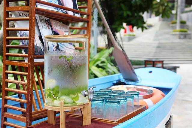 吃完饭去消消食儿,作为回报、给小妞拍几张样片。途径泳池时,看到免费的饮品、水果和杂志,瞬间脑补画面,躺在泳池边的躺椅上、看着杂志、是不是喝口冰水、吃口水果......嗯,度假元素就是这么饱满。