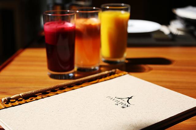 如果觉得纯水淡而无味,不如到水榭感受一下不同的饮品。小妞说鲜榨果汁会起沫,于是我们验证了一番。大家如果去了就放心喝吧,已鉴定。