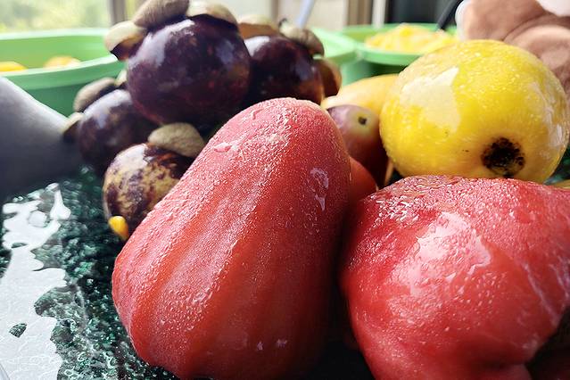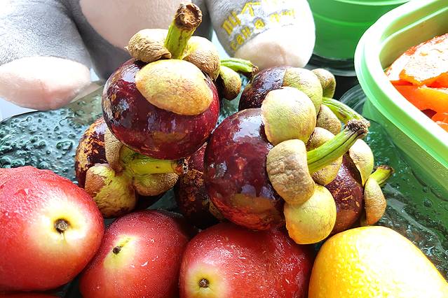 这是第一波水果,芒果、莲雾、山竹、椰冻、菠萝......还有龙眼儿......
