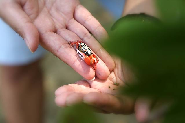 滴~打卡:在教练的引导下、将皮划艇驶入红树林,登陆后调戏了独臂小螃蟹(原来只是远远的看见过,这次还捧在手里盘了一会儿);
