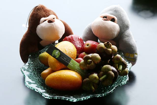 水灵灵的水果、直接送到了酒店礼宾部,只见小妖精蹦着跳着就出门了。