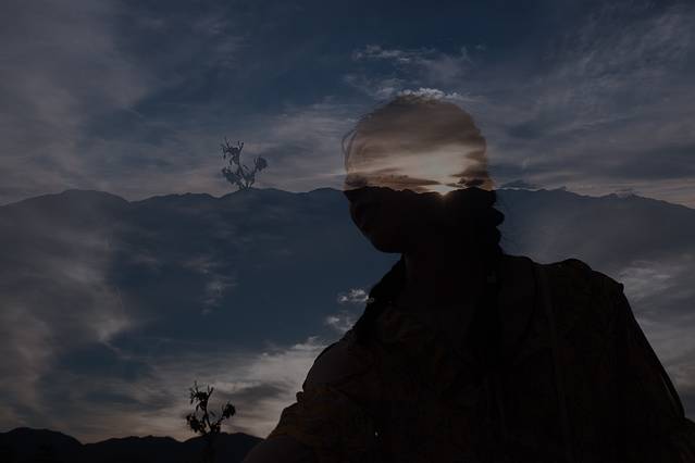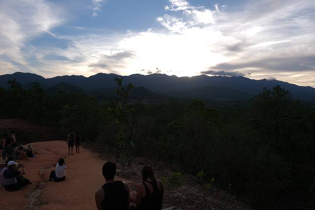 太惊险的地方不敢去,我们坐在一个安全的地方等日落。