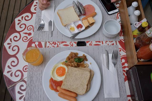 20小屋客栈的餐厅在门口的小花园里,早餐算不上Emmmm,但也就是just so so.