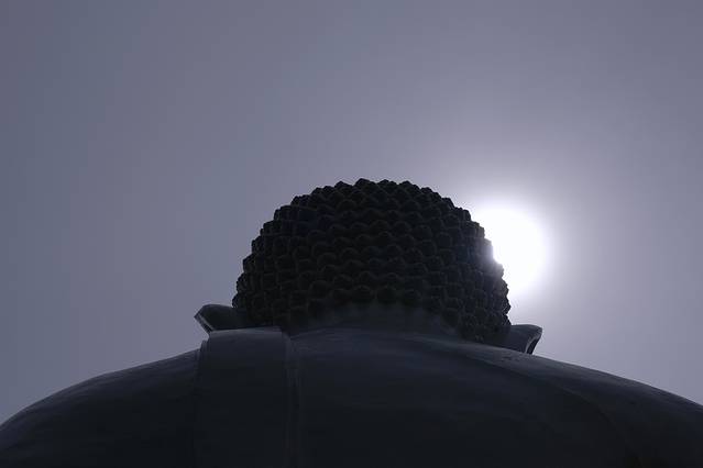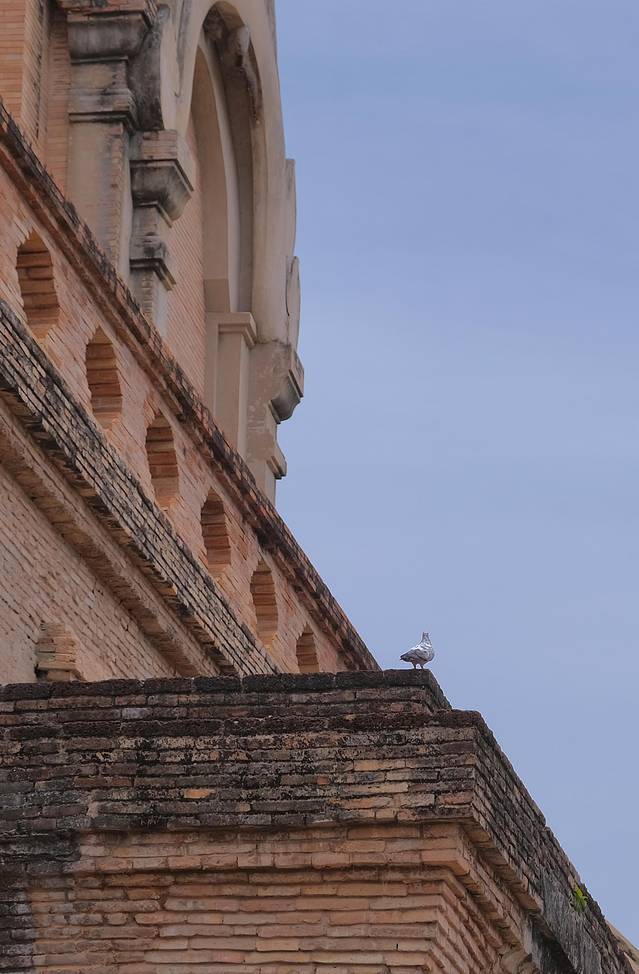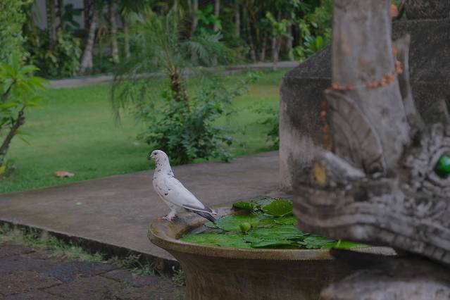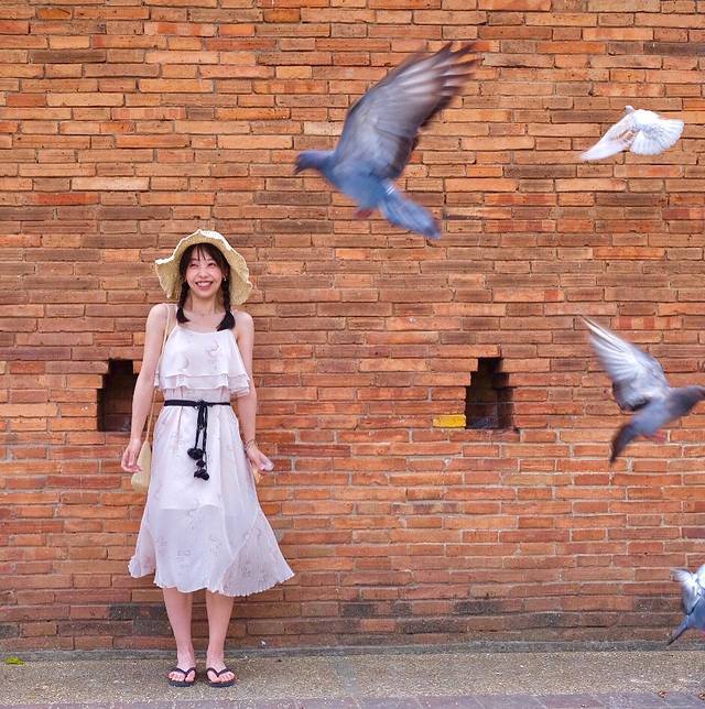 游人不多,鸽子在寺庙周围盘旋,偶尔有僧人走过。炎炎夏日,心似乎也跟着静了下来。