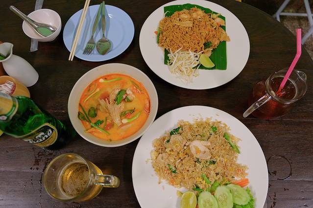 点了冬阴功汤和评价比较好的炒饭炒面。