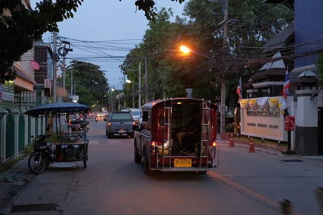 在 清迈 大学门口拍了个照,找到旁边去双龙寺的双条车。