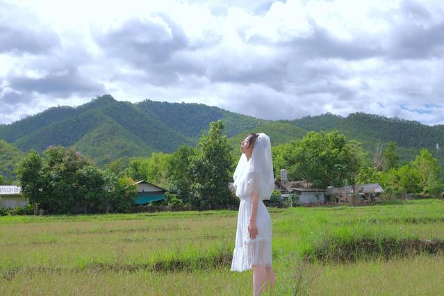 一直觉得清迈和拜县适合拍轻婚纱,没那么多时间准备,出发前买了个头纱意思一下。